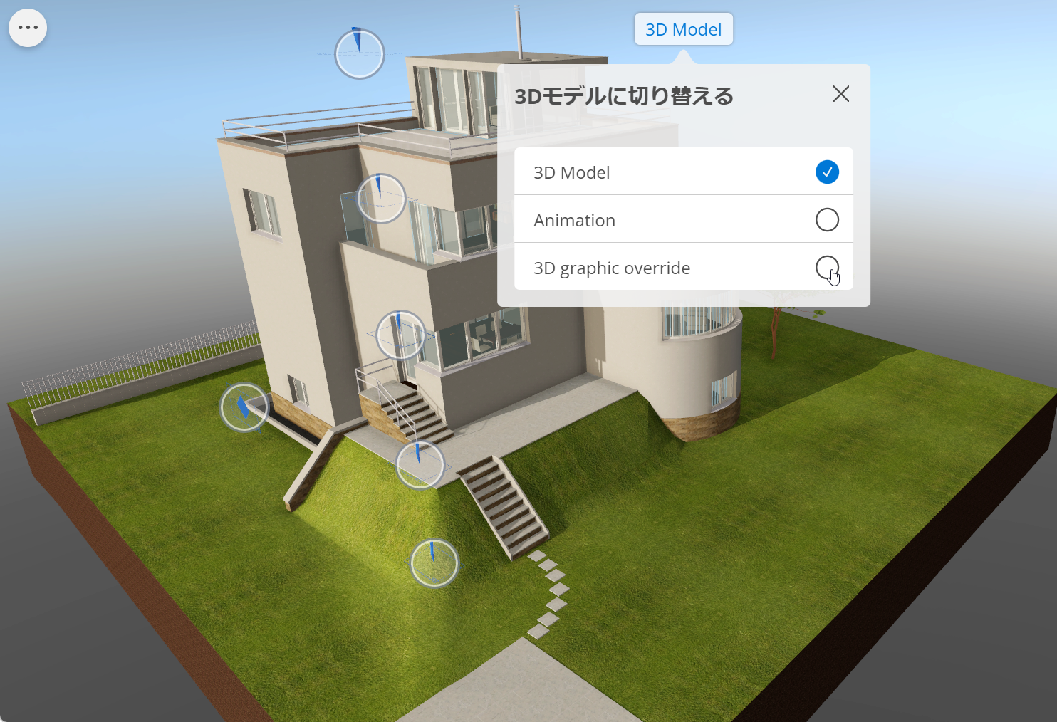 現在のカメラ位置と3D設定(カットモデル、日陰、太陽の位置)を保持したまま、ただちに切り替えられます。