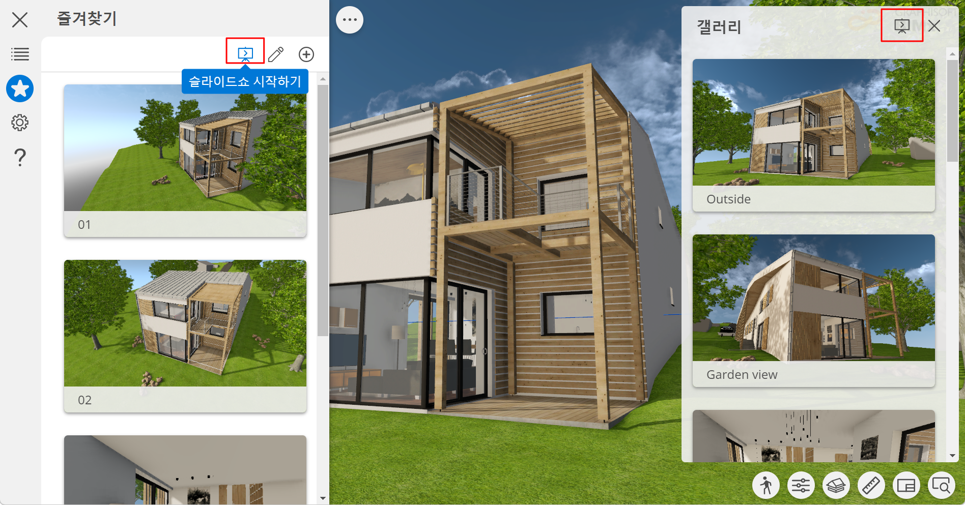 - 갤러리 또는 즐겨찾기 팔레트에서 슬라이드쇼 재생을 클릭하세요.