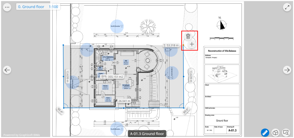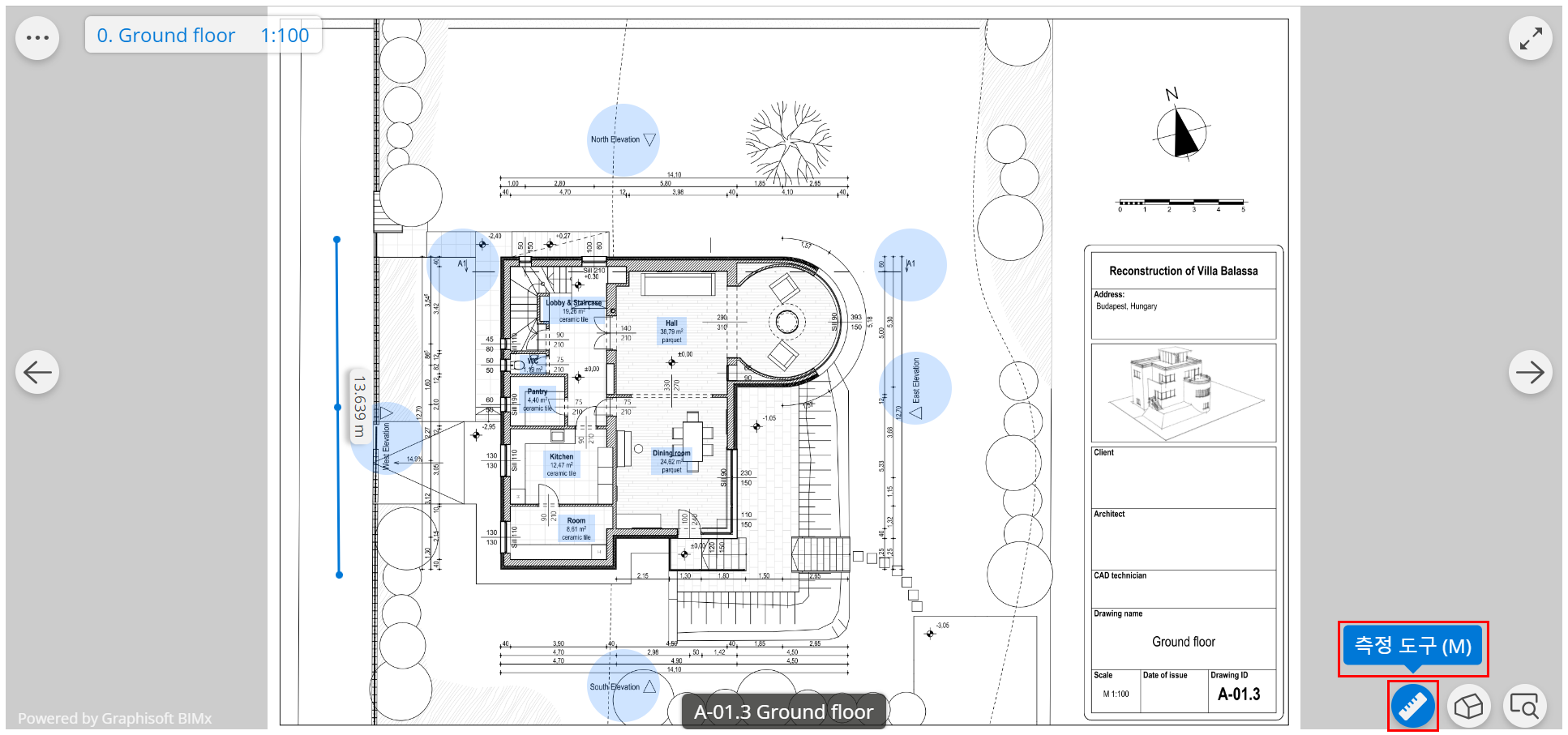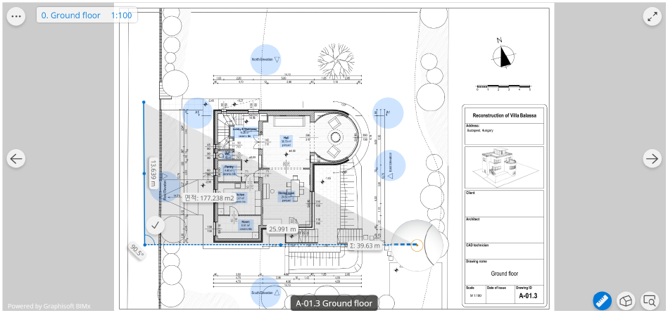 BIMx 하이퍼 모델에 있는 2D 레이아웃을 엽니다.
