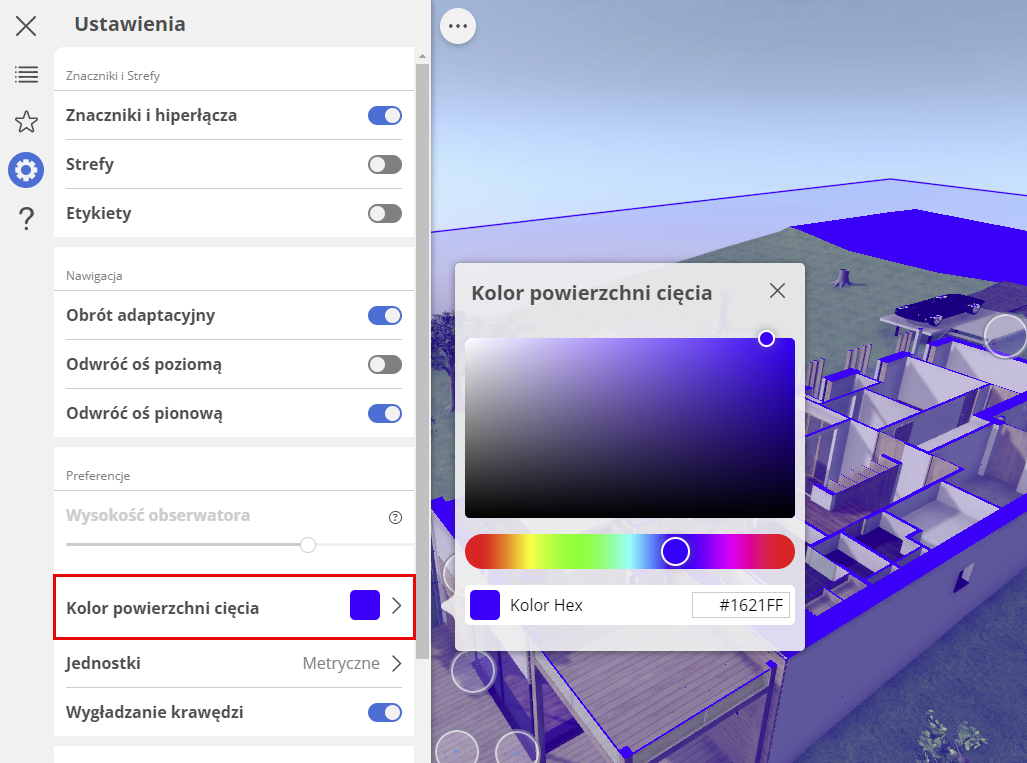 Dostosuj sposób przedstawiania modelu 3D, zmieniając kolor powierzchni w przekroju.