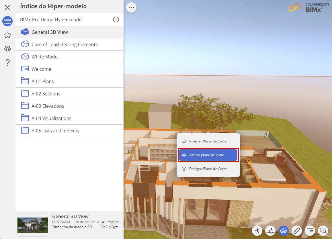 O plano de corte personalizável é um recurso do BIMx Pro. Não está vendo? Saiba como acessar os recursos Pro em Licenciamento do BIMx Pro