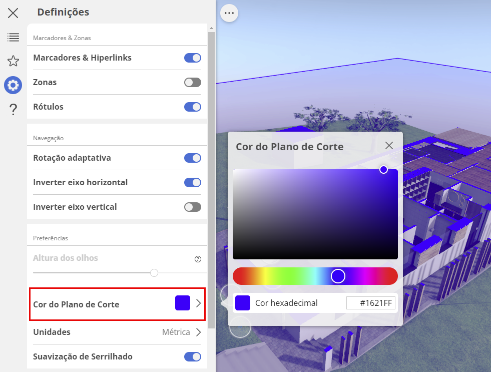 Use uma cor neutra para manter o foco no plano ou adote sua identidade corporativa com sua própria paleta de cores. Você precisa escolher sua cor personalizada apenas uma vez. Esta cor é salva nas Preferências do BIMx e é aplicada a todos os seus modelos.