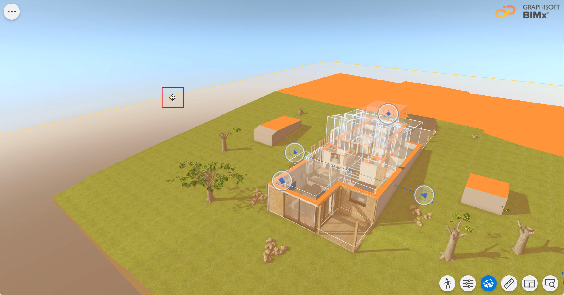 5. Passe o mouse sobre o quadro para exibir o plano de corte. Você pode alterar a cor do plano de corte usando o Seletor de Cores do Plano de Corte nas Definições do BIMx. Consulte Seletor de Cores do Plano de Corte