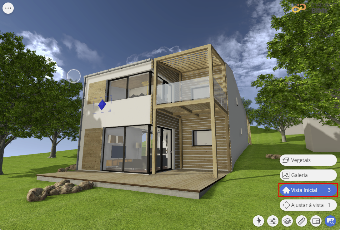 A vista inicial é definida no Archicad. (Para redefinir uma vista 3D no Archicad, use o comando "Redefinir com definições atuais".)