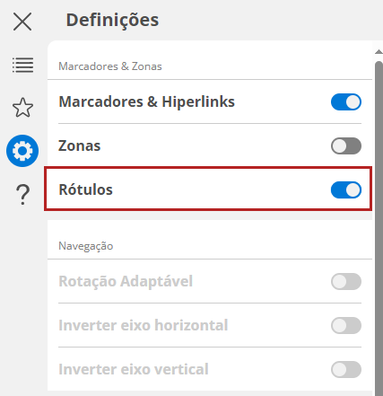 Para ativar ou desativar os rótulos interativos: