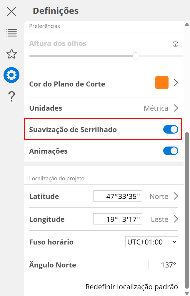 O efeito de suavização está ativado por padrão, para garantir bordas mais suaves nas vistas em 3D do BIMx.