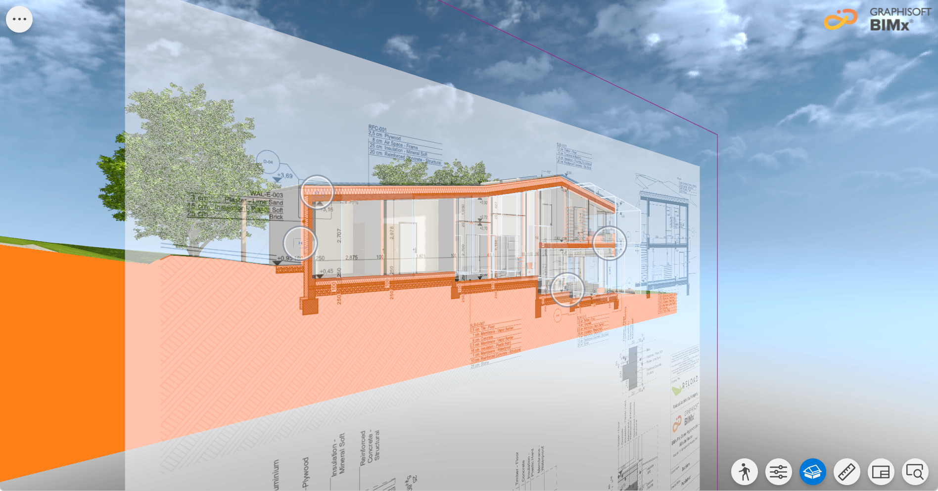 O modelo 3D abre-se, com o Layout sobreposto, e é cortado horizontal ou verticalmente, dependendo do tipo de vista.