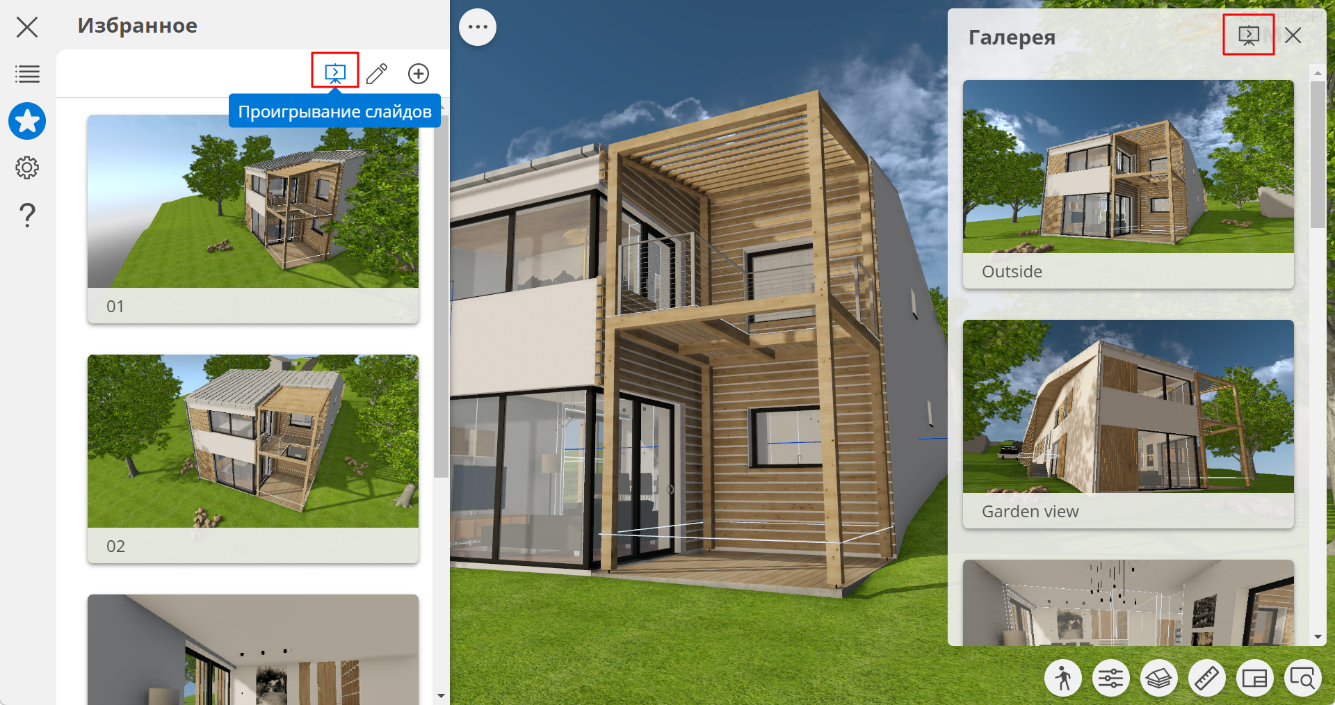 Воспроизведение анимированных презентаций на основе элементов Галереи BIMx или Избранного