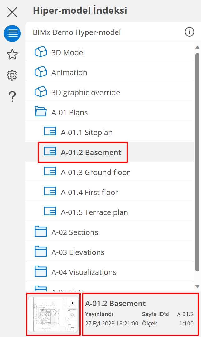 Dizini göremiyorsanız: sol üst menünün üzerine gelin: Model Dizini etiketi ekranın sol üst köşesinde belirir. Açmak için tıklayın.