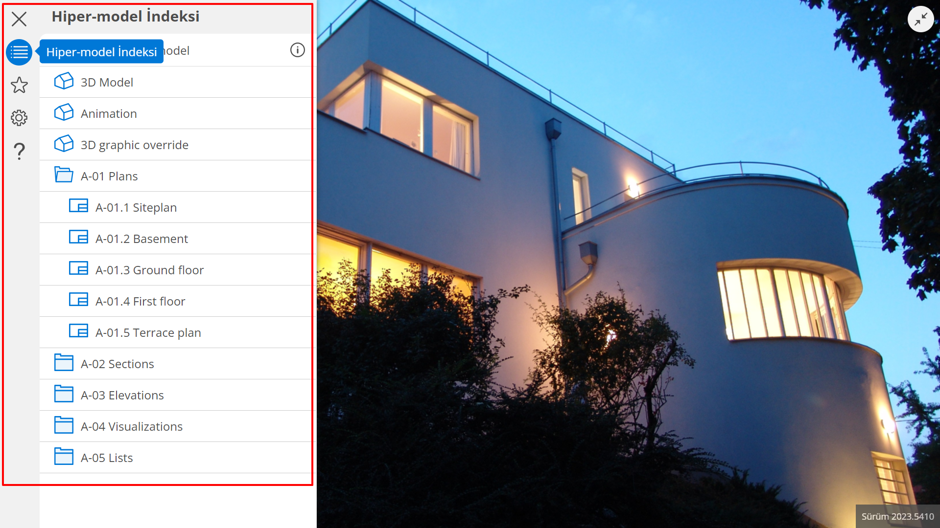 - Hiper-model Dizini'nden bir 3D model veya 2D belge seçin.