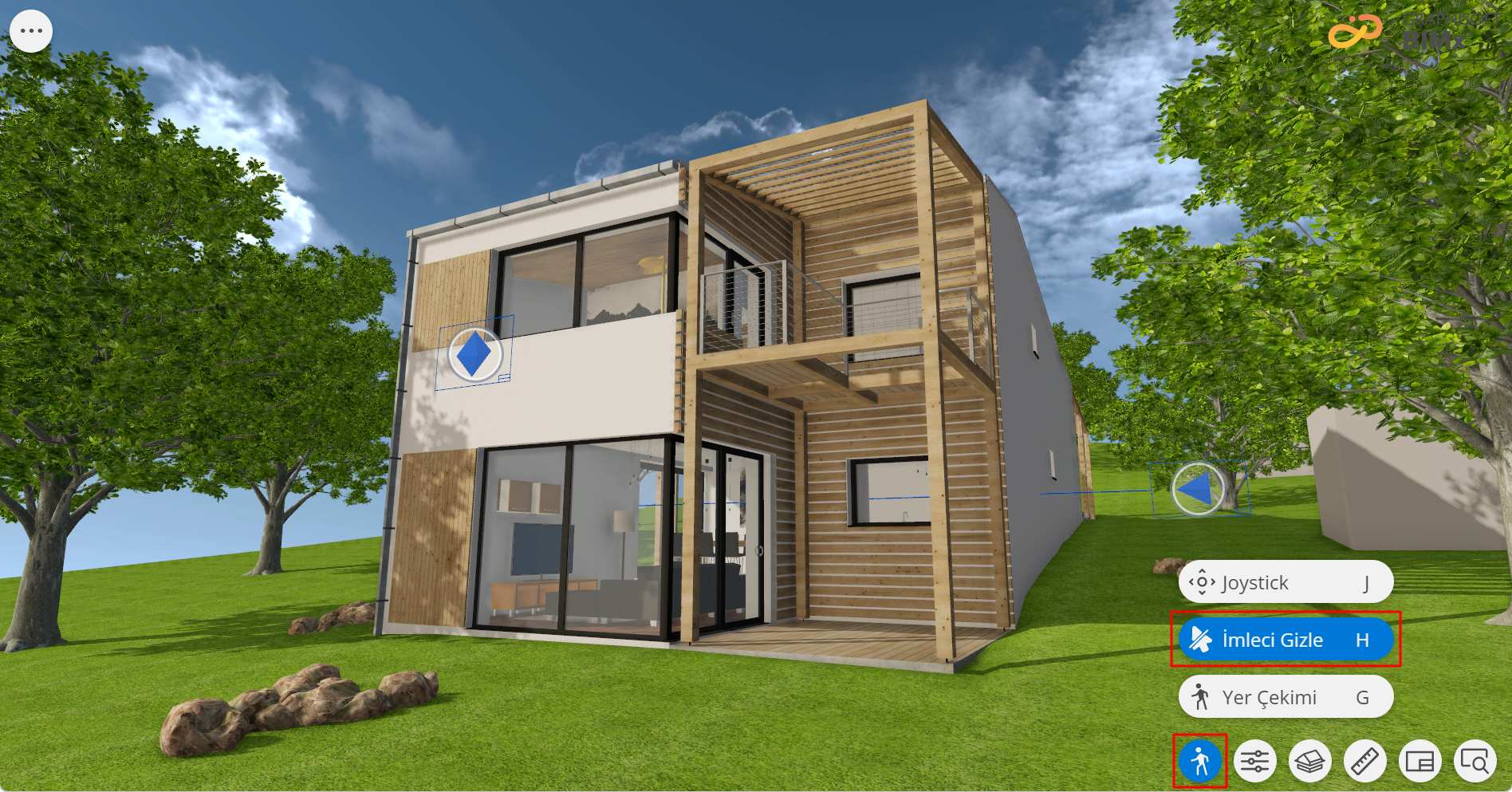 - Joystick simgesine (sol alttaki ilk simgeden) tıklayın veya J tuşuna basın