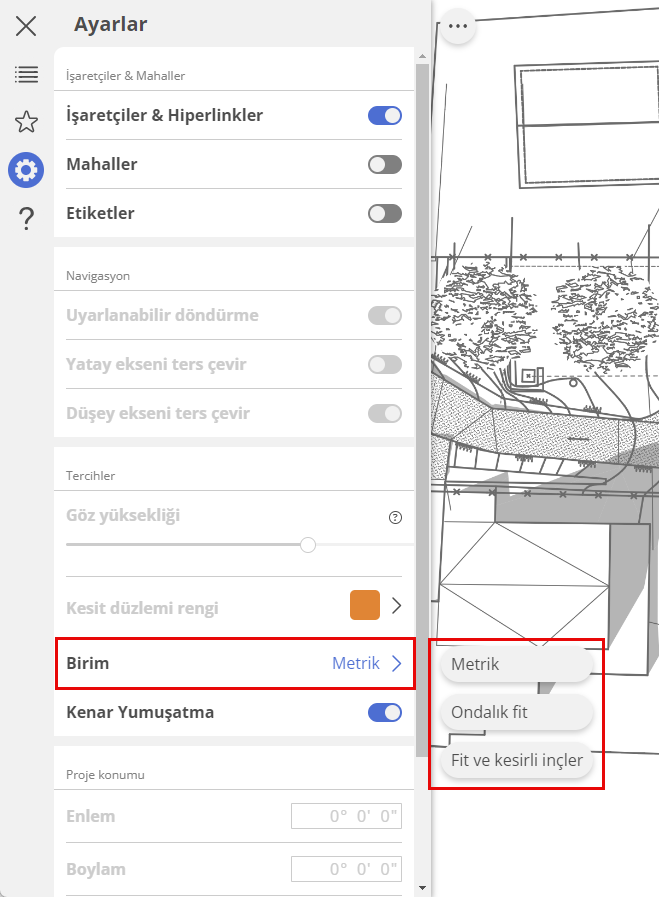 Sol üst köşedeki etikete tıklayarak ölçeği ayarlayabilirsiniz.