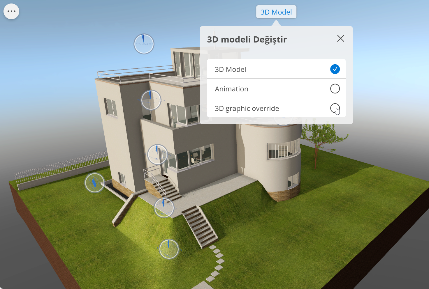 Mevcut kamera konumunu ve 3D ayarlarını (kesim modeli, gölgelendirme, güneş konumu) koruyarak bunlar arasında anında geçiş yapın.