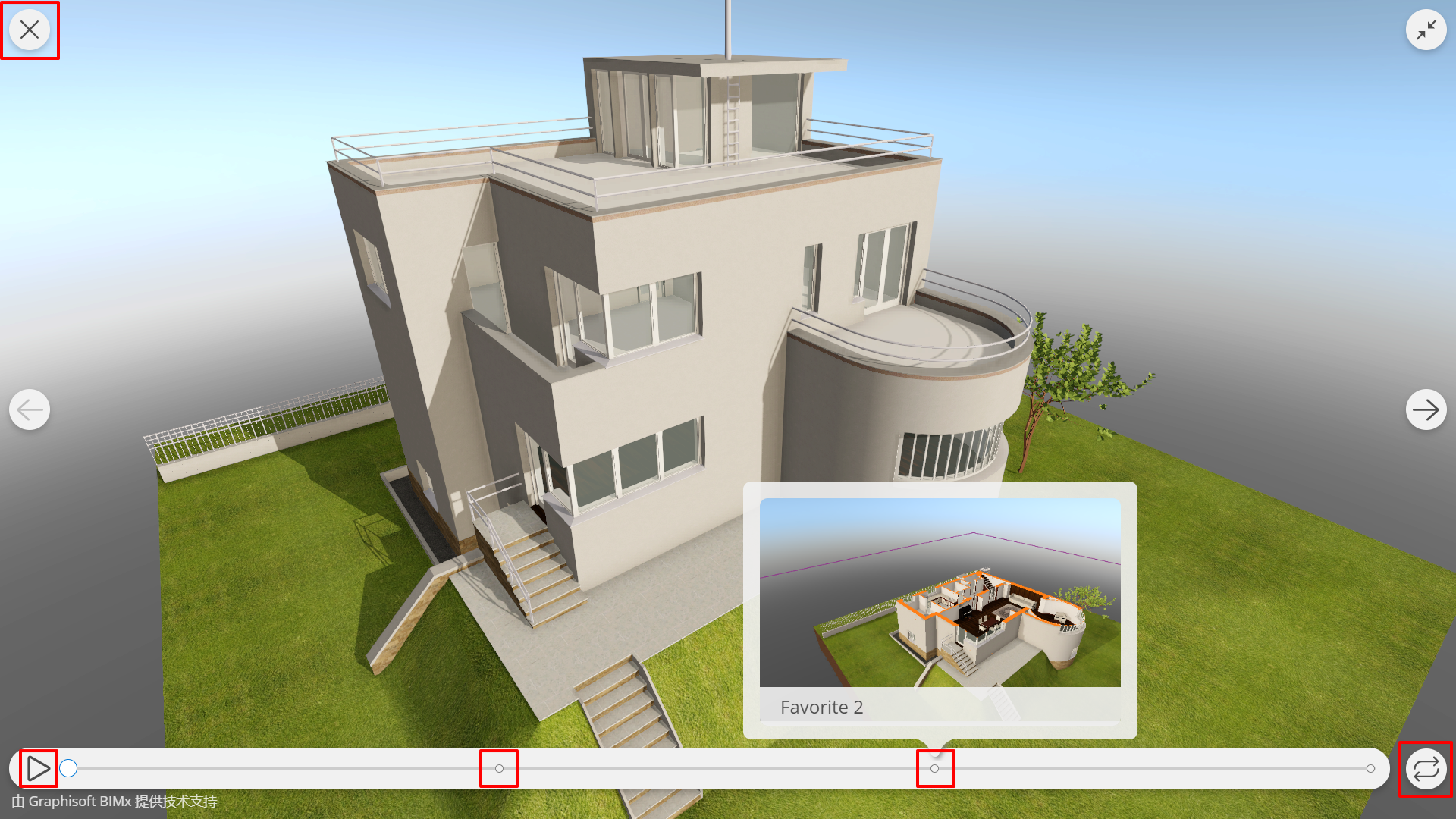 播放动画演示文稿,内容基于BIMx 展板或收藏的内容
