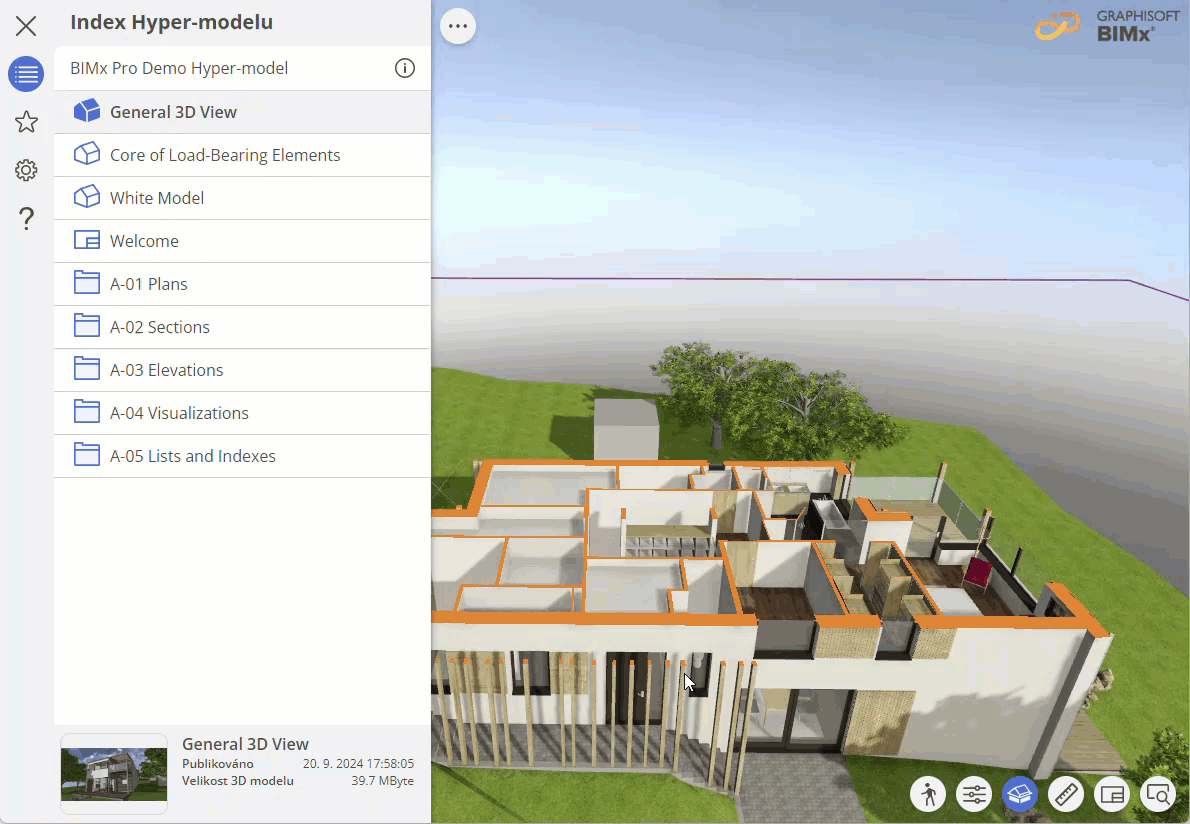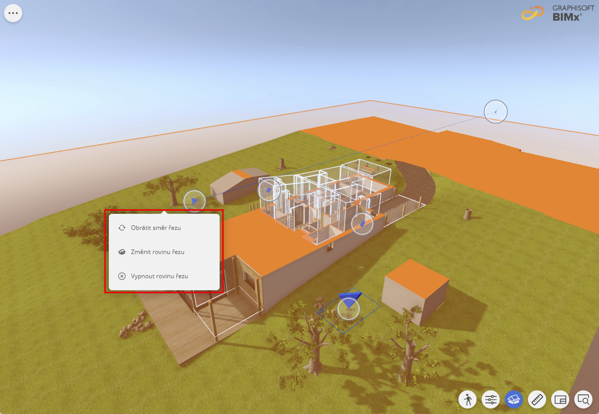 Možnost vlastní roviny řezu je funkce BIMx Pro. Nevidíte ji? Zjistěte, jak získat přístup k funkcím Pro v rámci BIMx Pro Licencování
