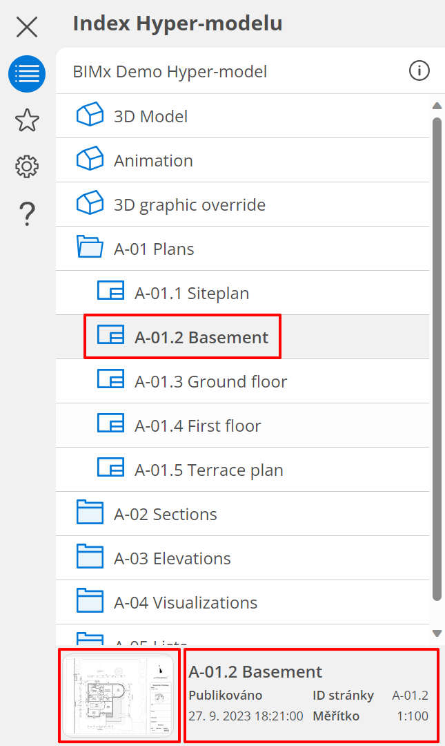 - Vyberte 3D model nebo 2D dokument z indexu hyper-modelu.