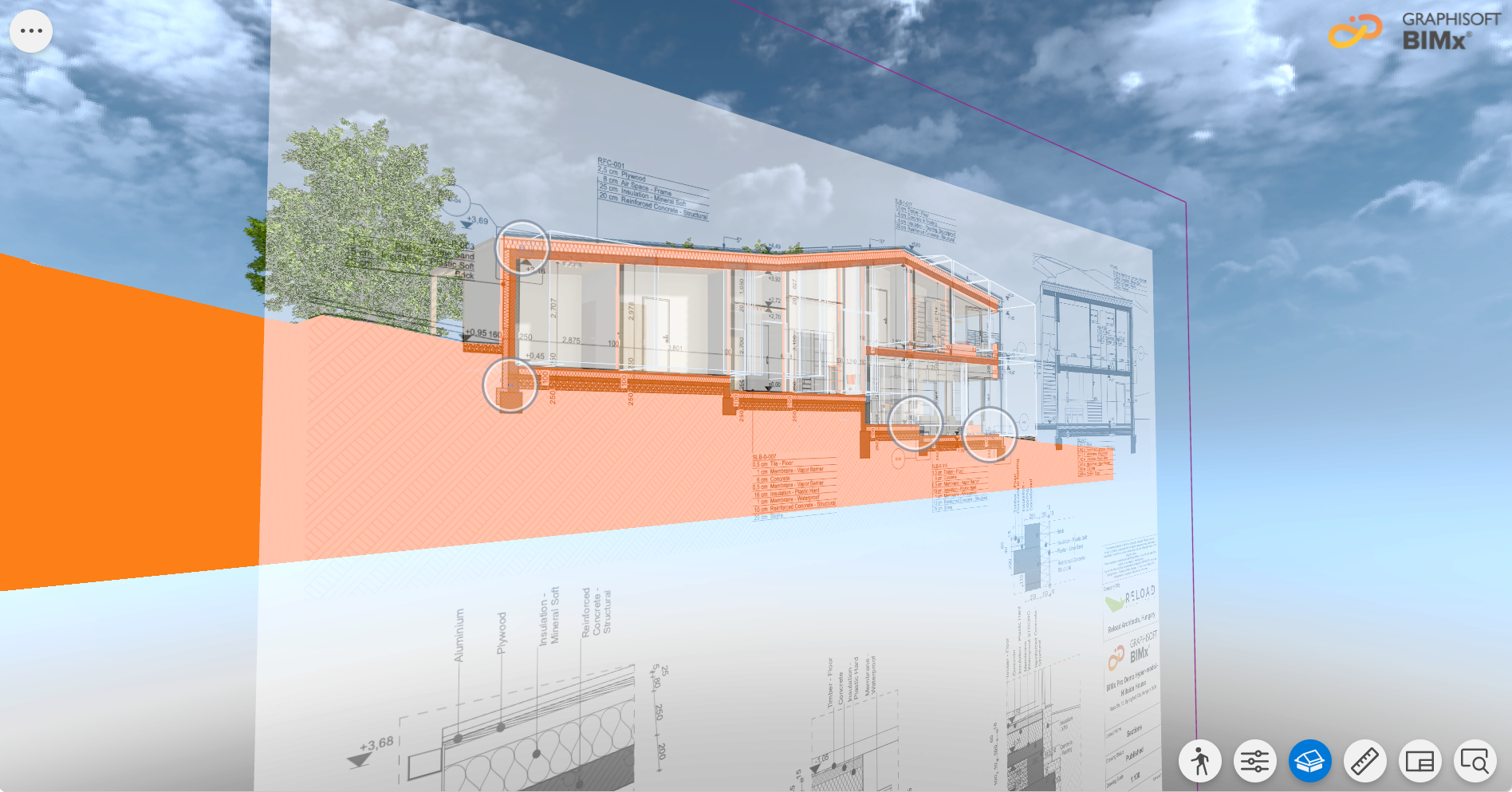 - Vytvořit řez pro vytvoření dočasné 3D roviny řezu Poznámka: Kliknutím na rámeček se vybere samotná rovina řezu (nikoli výkres). Kliknutím pravým tlačítkem myši otevřete kontextovou nabídku roviny řezu s příkazy Obrátit a Vypnout. Více informací o rovině řezu naleznete zde: 3D řez modelu (klávesová zkratka: C)