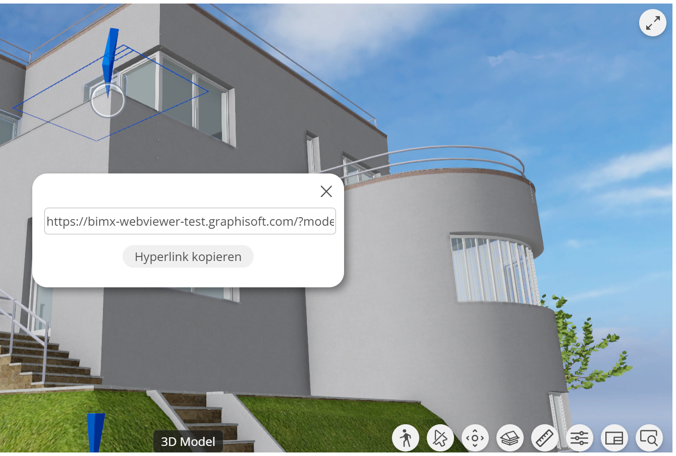 Bei der Anzeige eines BIMx-Modells in BIMcloud ist die Funktion Hyperlink erstellen nicht verfügbar.