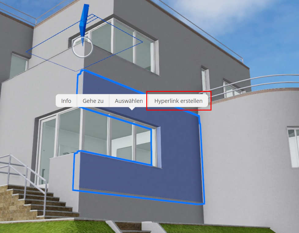 - Klicken Sie auf Hyperlink erstellen. Hyperlinks zu 3D-Elementen speichern die aktuelle Kameraposition.