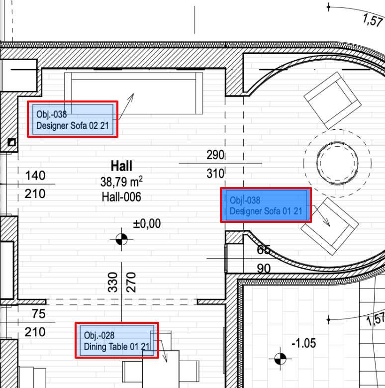 Klicken Sie auf ein Etikett, um auf BIM-Elementdaten aus dem Layout zuzugreifen