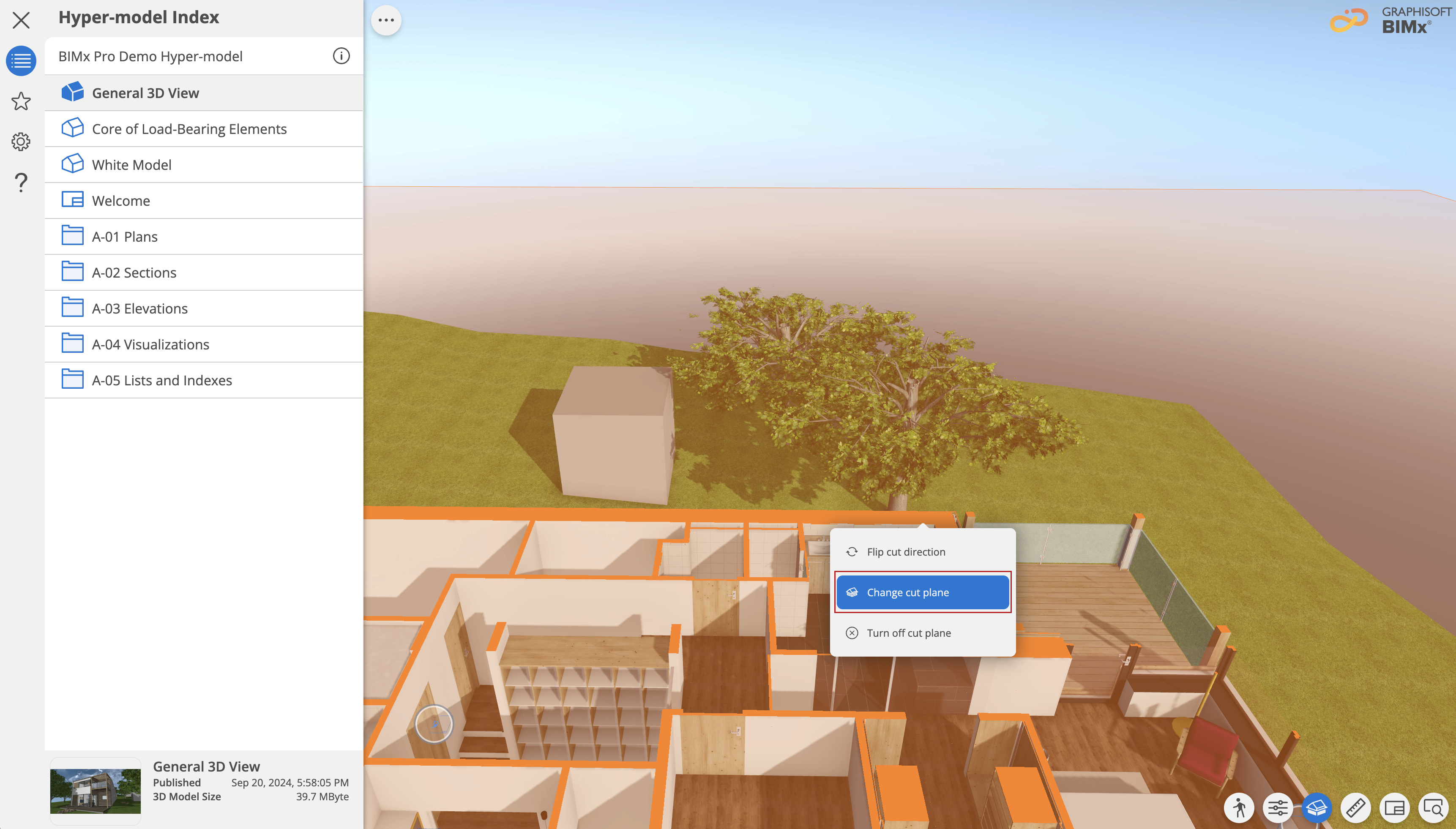 Customizable cut plane is a BIMx Pro feature. Don't see it? Learn how to access Pro features at BIMx Pro Licensing
