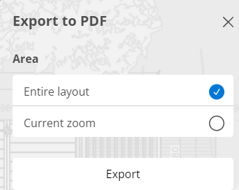 - Choose to export the entire layout, or just the current zoom.