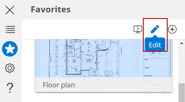 Unlike Gallery items, which are part of the Hyper-model, Favorites are stored on your computer (BIMx Desktop) or web browser (BIMx Web). So if you share your Hyper-model, Favorites are not included.