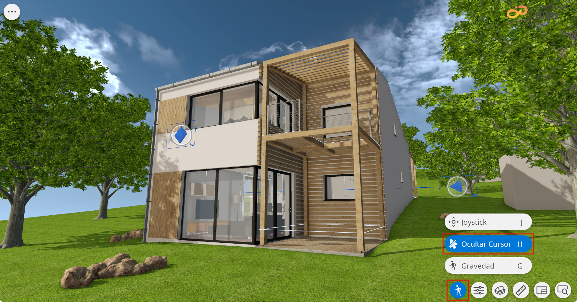 Ocultar el Navegador proporciona una navegación en primera persona, mientras que la cámara se controla directamente moviendo su dispositivo de entrada, por lo que no se necesitan clics.