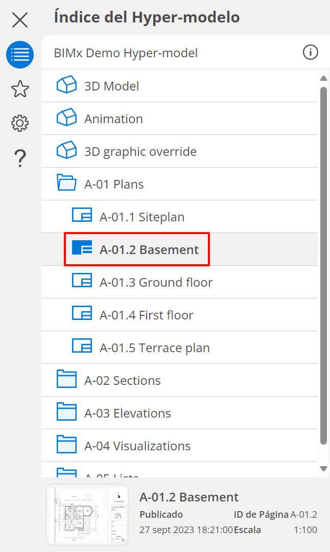 Para el elemento actualmente abierto, el icono aparece coloreado.