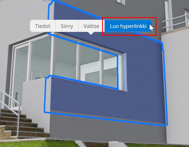 Kun BIMx-mallia tarkastellaan BIMcloudissa, Luo hyperlinkki -toiminto ei ole käytettävissä.