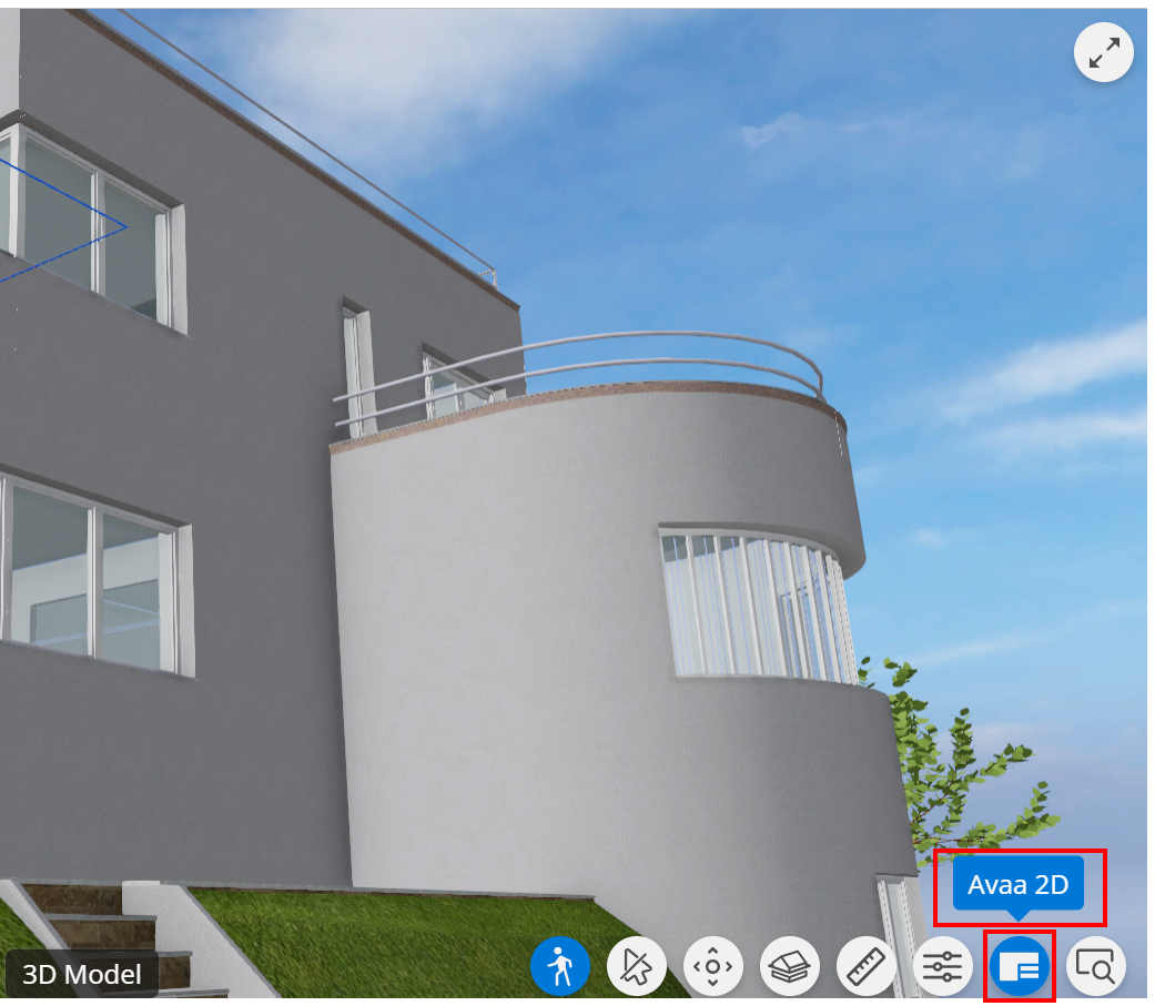 Napsauta oikeassa alakulmassa olevaa Avaa 2D -kuvaketta.