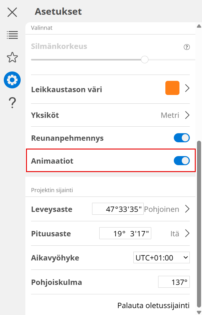 Jos haluat nopeuttaa työnkulkuasi ja vaihtaa näkymien välillä välittömästi, kytke Animaatiot pois päältä.