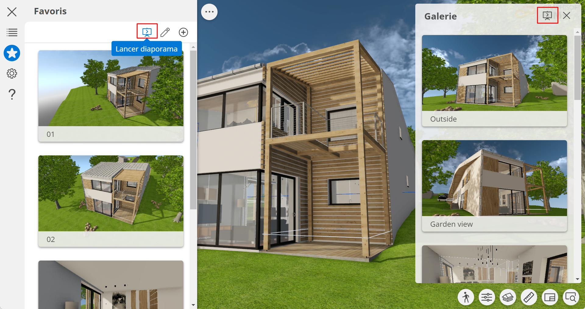 Affiche une présentation animée basée sur des articles de Galerie BIMx ou des Favoris