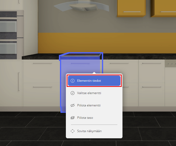 - Faites un clic droit ou un click long (sur l'écran tactile : appui long) sur un élément du modèle pour le mettre en surbrillance et ouvrir le menu contextuel.