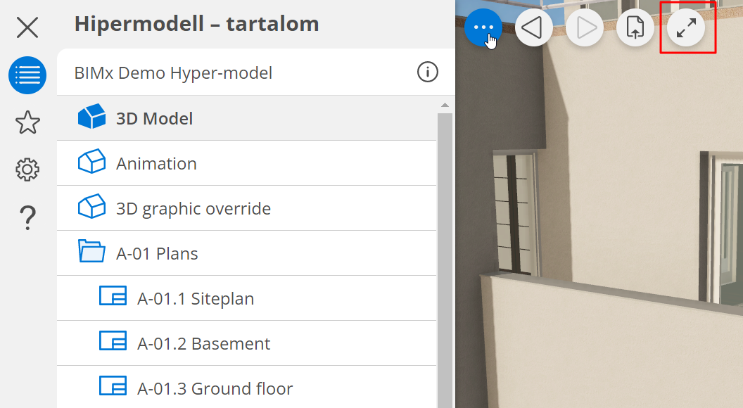 - A hárompontos menüben kattintson a Teljes képernyő ikonra.