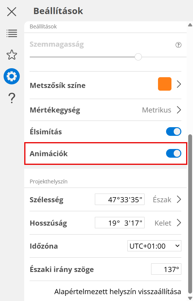 A munkafolyamat felgyorsításához és a nézetek közötti azonnali váltáshoz kapcsolja ki az Animációk kapcsolót.