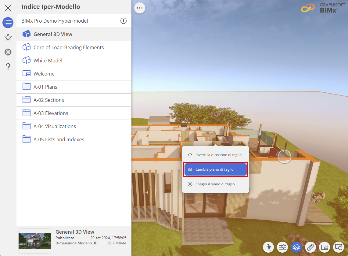 Il piano di taglio personalizzabile è una caratteristica di BIMx Pro. Non si vede? Scopri come accedere alle funzioni Pro su BIMx Pro Licensing