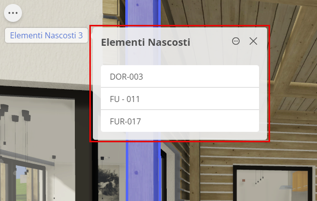 La palette elenca gli elementi nascosti secondo l'ordine alfabetico dei loro ID di Archicad.