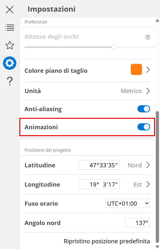 Impostazioni Sole e Posizione Progetto