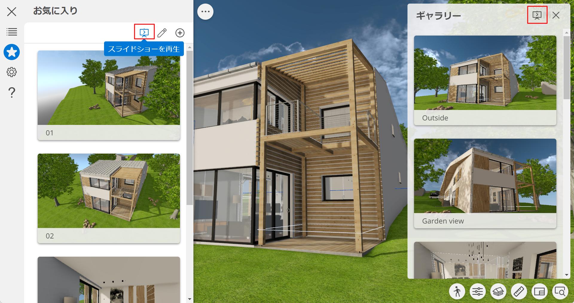 3. 左下の再生ボタンをクリックします。プレゼンテーションは自動的に始まり、7秒ごとに次のお気に入りまたはギャラリー表示に切り替わります。