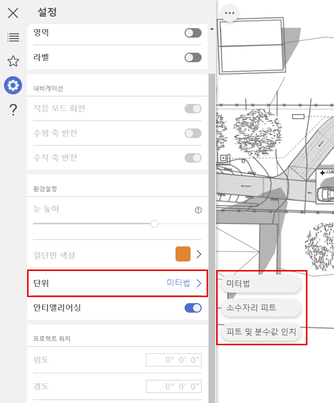 BIMx 하이퍼 모델에 있는 2D 레이아웃을 엽니다.