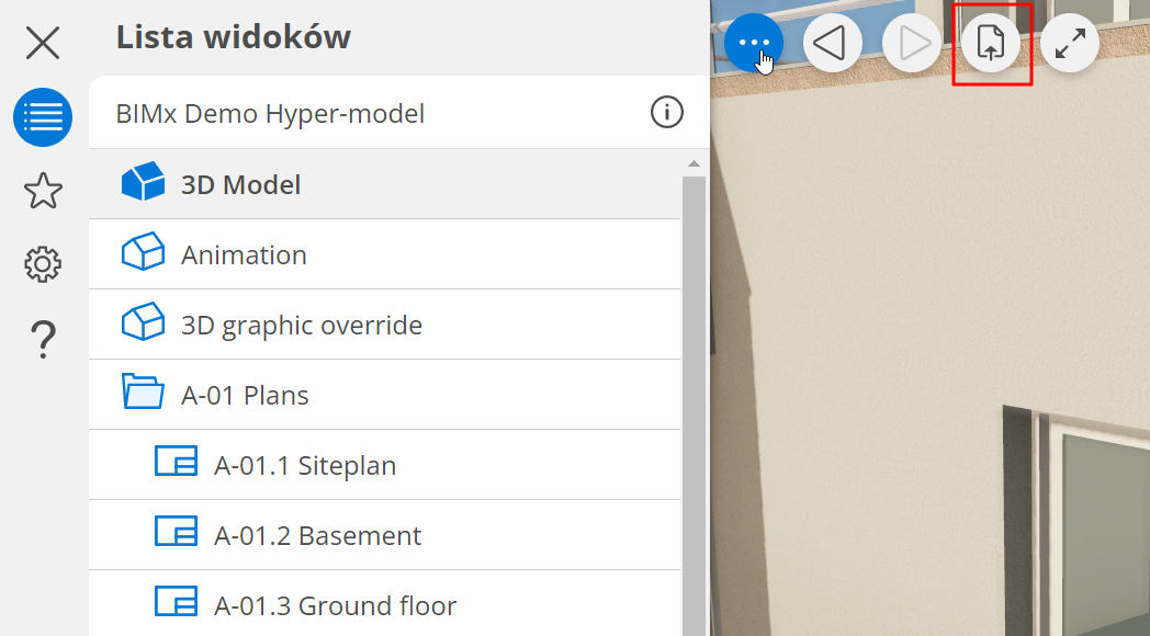 Arkusz lub widok modelu 3D jest eksportowany jako plik PDF do wskazanego folderu. (Użyj ustawień przeglądarki, aby określić sposób i miejsce pobierania plików).