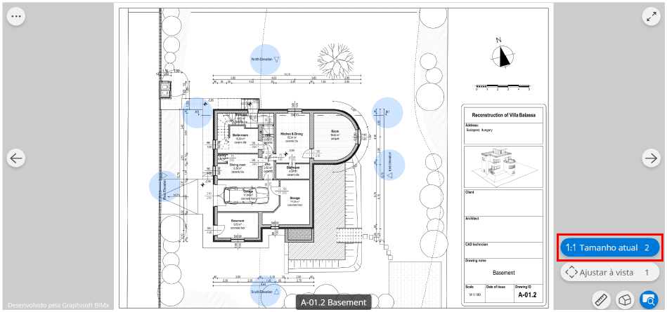 - Nos comandos que aparecem, clique no ícone 1:1 (Tamanho atual) ou pressione a tecla 2 para ampliar um documento 2D para uma escala de 100%.
