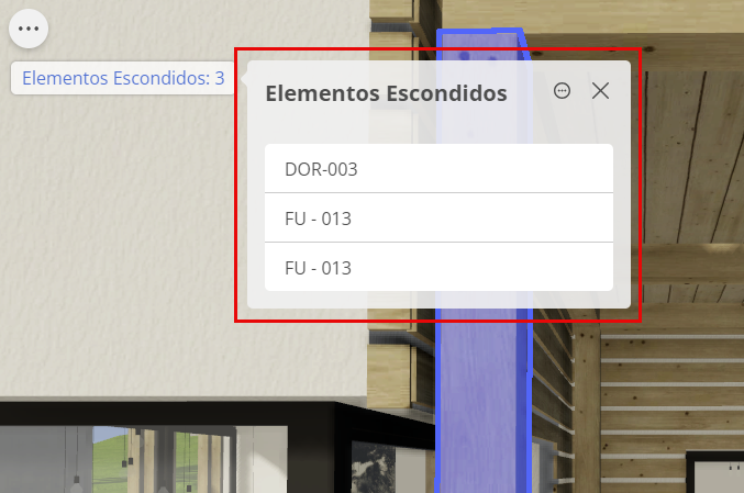 A paleta lista os elementos escondidos em ordem alfabética com base em sua ID definida no Archicad.