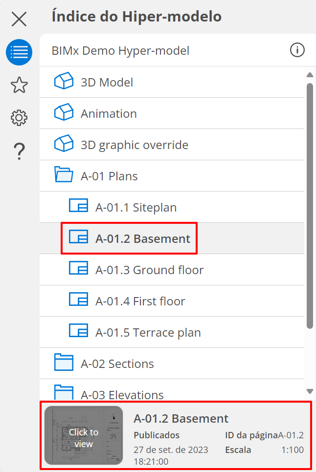 - Clique em um item para ver suas informações abaixo e em “Clique para ver” no ícone de Pré-visualização para abri-lo