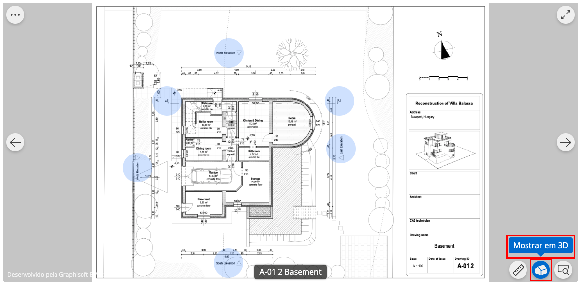 O BIMx abre automaticamente as vistas mais relevantes. Se um Leiaute contiver vários desenhos, amplie o desejado para exibi-lo na vista 3D correspondente.
