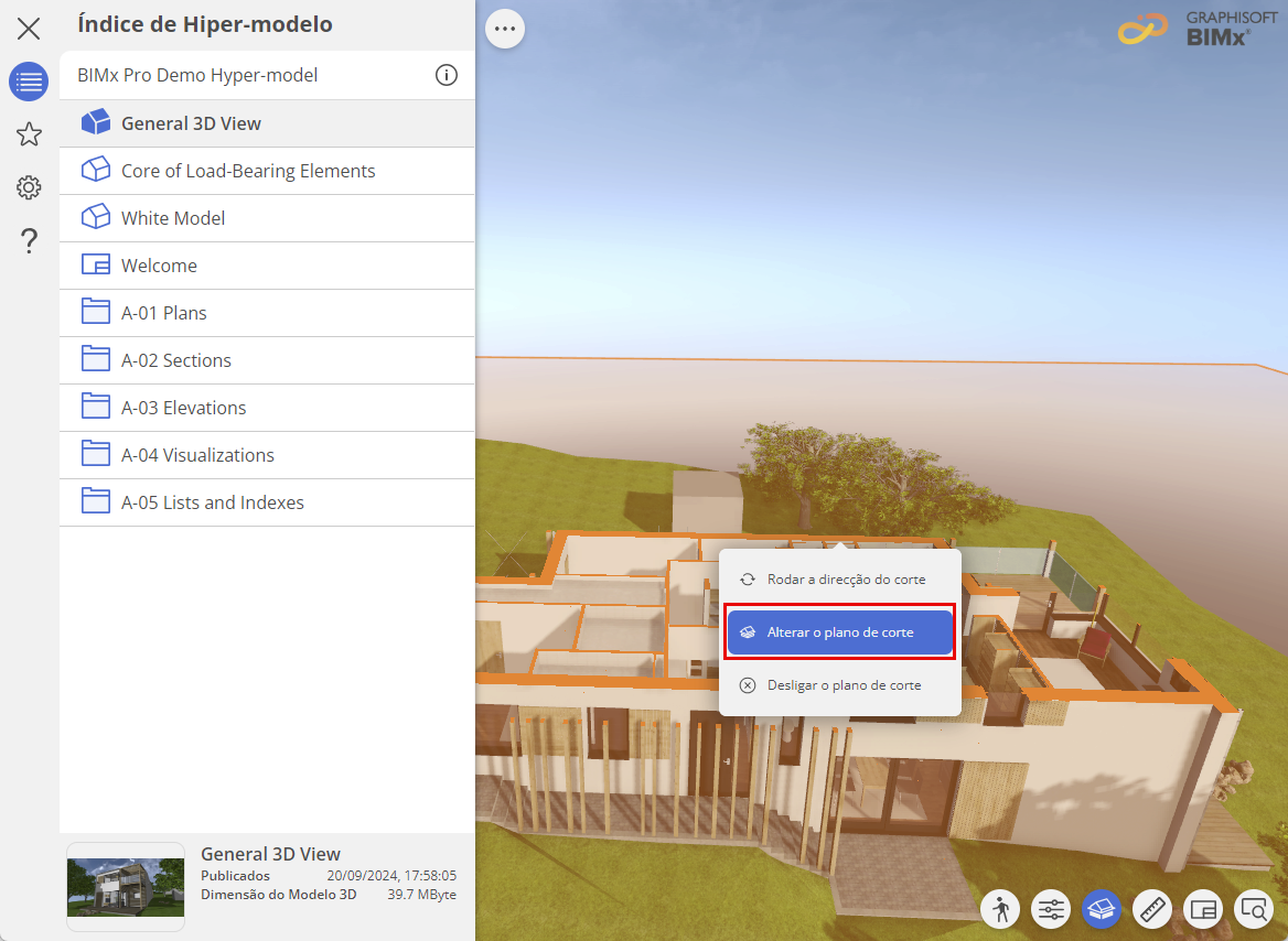 O plano de corte personalizável é uma funcionalidade do BIMx Pro. Não está a ver? Saiba como aceder às funcionalidades Pro em Licenciamento BIMx Pro