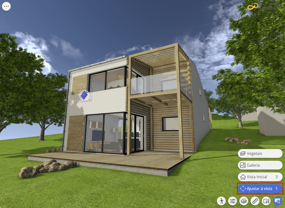 - Nos comandos que aparecem, clique no ícone Ajustar à Visualização ou prima a tecla 1.