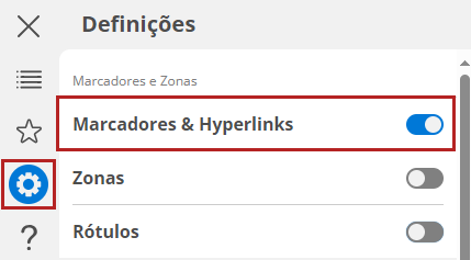 Os marcadores e hiperlinks são mostrados por defeito. Para os activar ou desactivar: