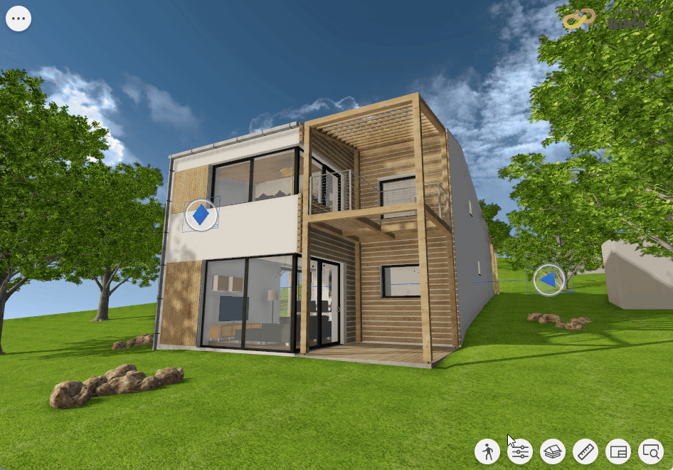Sugestão: Se fizer duplo clique ou duplo toque num elemento, o edifício será colocado em vista frontal. Isto ajudará a criar facilmente vistas de elevação/secção em axonometria. Pode combinar isto com um plano de corte, várias definições de sol por hora e guardar as suas vistas favoritas.